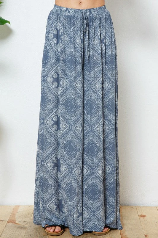 Bandeau crop top, palazzo elastic waist pants. rayon/