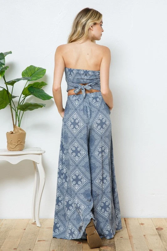 Bandeau Smocked Crop Top And Palazzo Pant Set