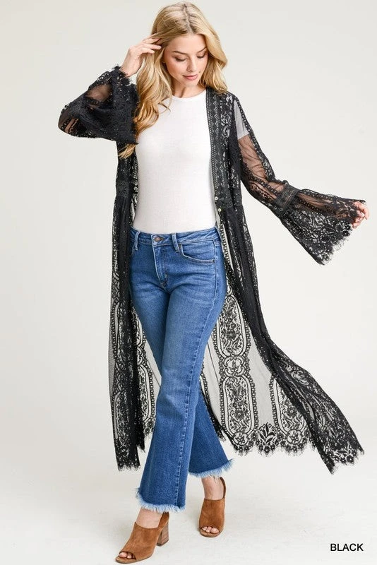 Watch out Stevie Nicks!!!Black Body Lace Cardigan is a throwback with #stevienicks Make a statement with all the lace and long flared sleeves. Button front, scalloped hem, lightweight.Also comes in black nylon/cotton also comes in red.