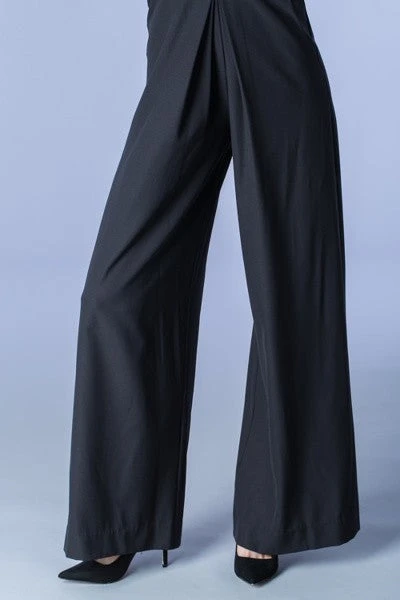 “Contemporary Flirty Halter Dream Jumpsuit” Flared Pant, summary halter, zipper back 100%polyester/model sm