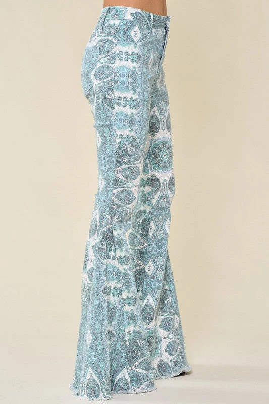Flare Jeans, medallion Print, zip-up, summary.