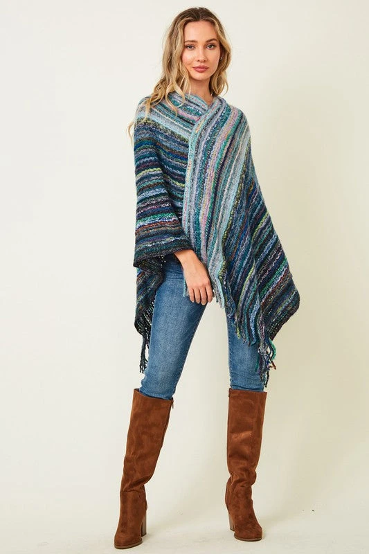 Blue Fluffy Yarn Poncho