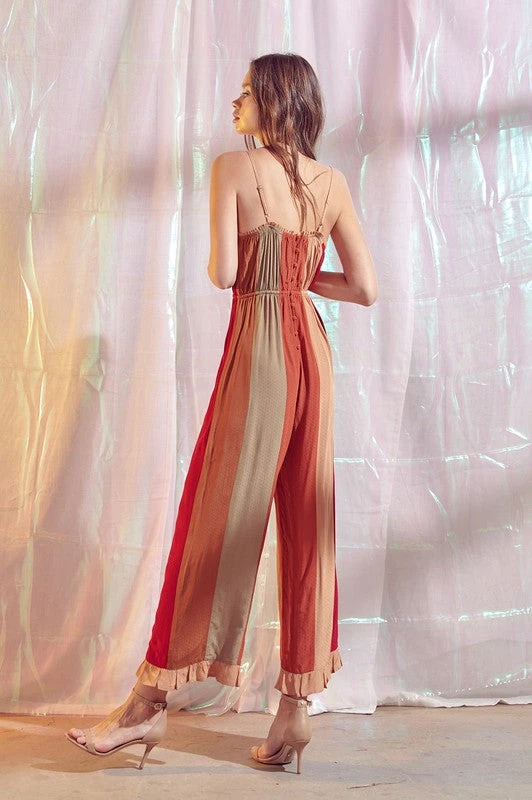 Bohemian Color Striped Ruffled Jumpsuit