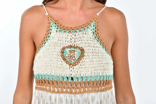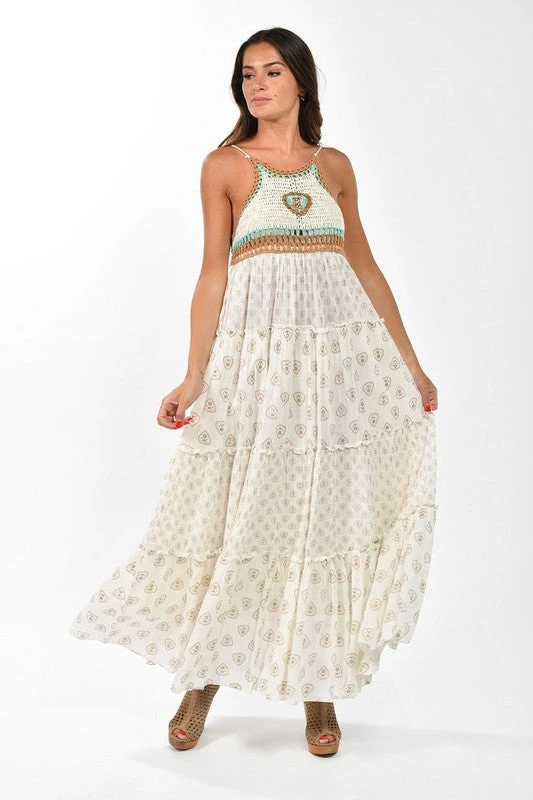 Bohemian Crocheted Halter Maxi Dress
