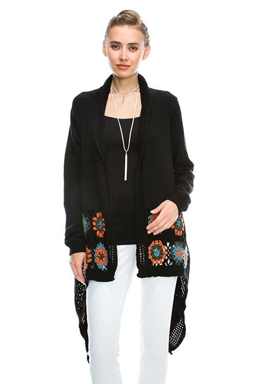 Bohemian Patchwork Design Long Sleeve Multi Color Cover Sweater 75%acrylic/25%mohair