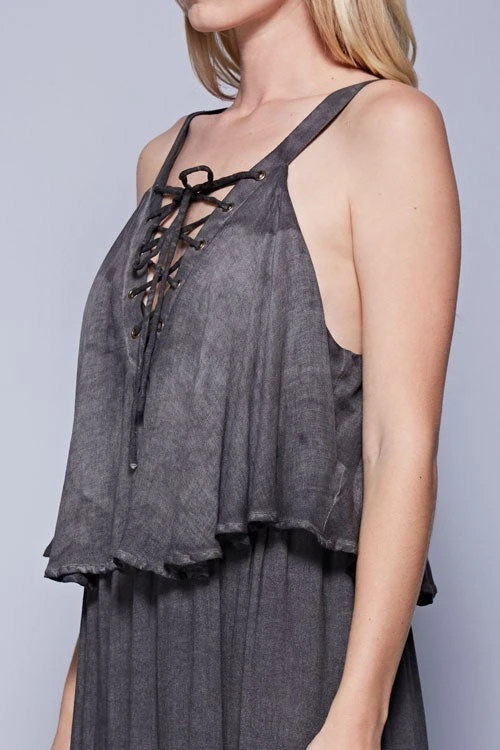 “Lace-up Front Beauty Maxi” This Bo-Ho Chic Charcoal Lace Up Maxi is light in Weight and Very Sexy On!!1 100%rayon