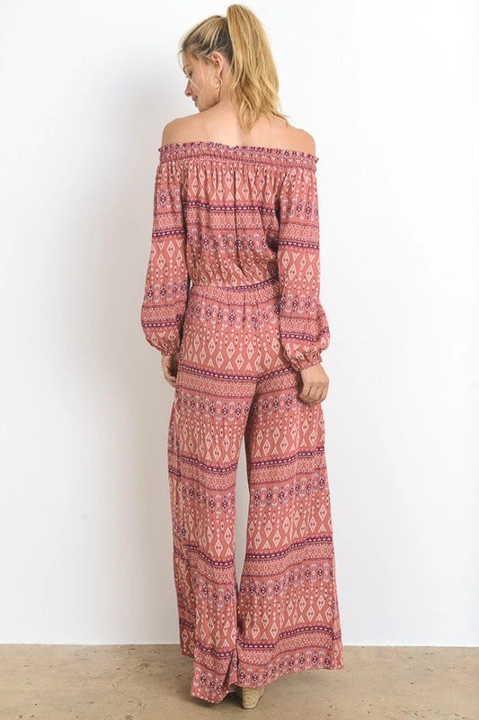 “Chic Off the Shoulder with Leg Slits Ensemble” Jumpsuit 100%rayon