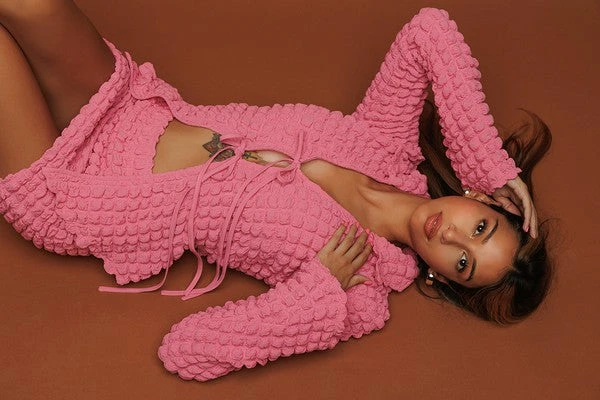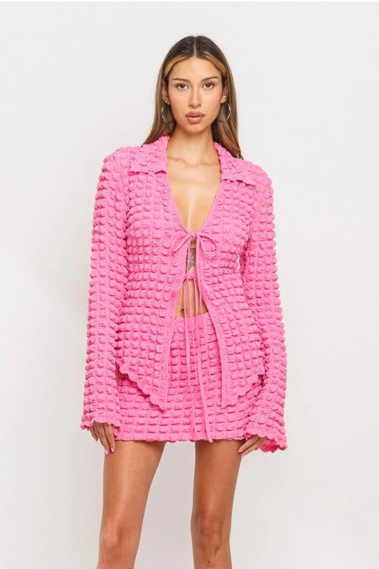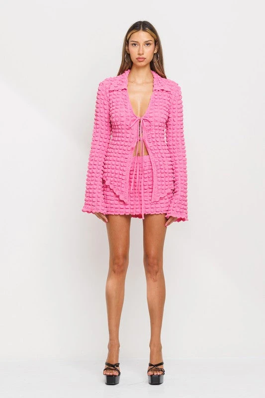 BUBBLE PUFF TIE CARDIGAN & MINI SKRT SET