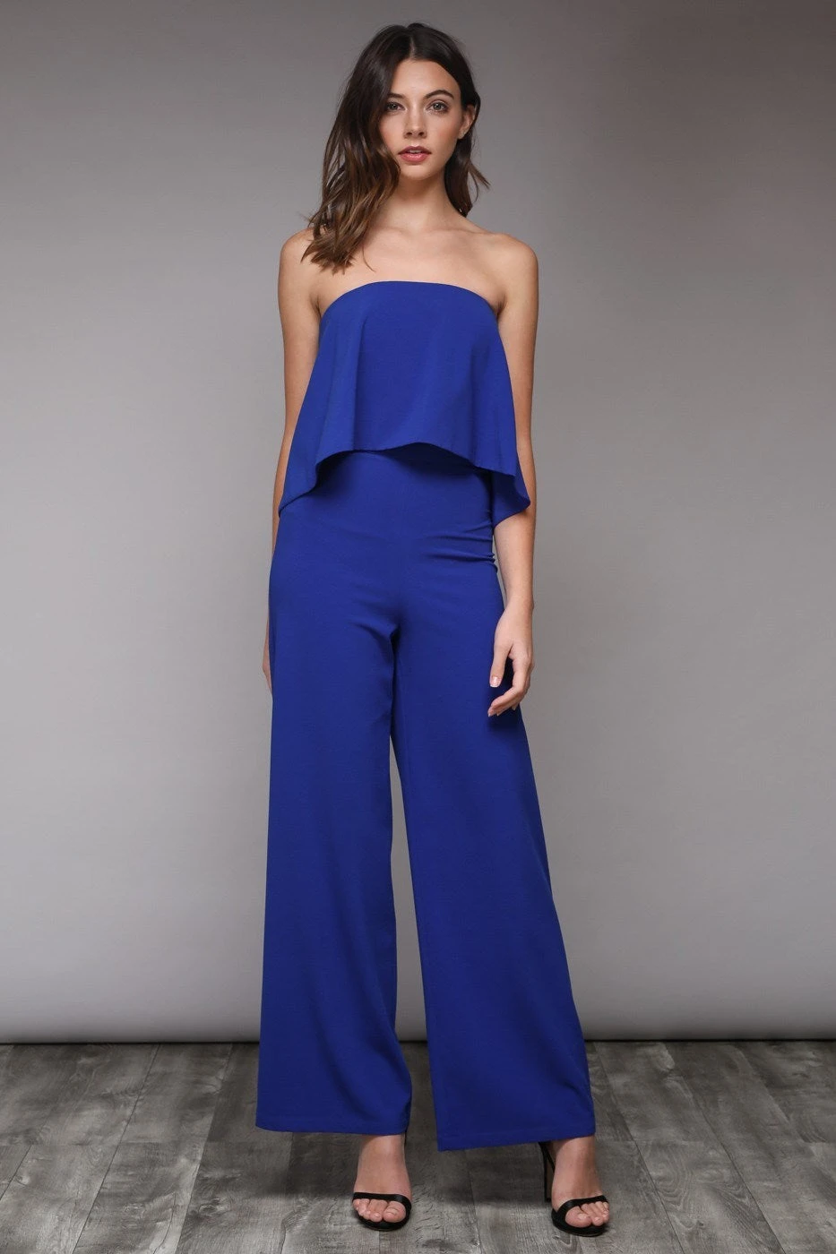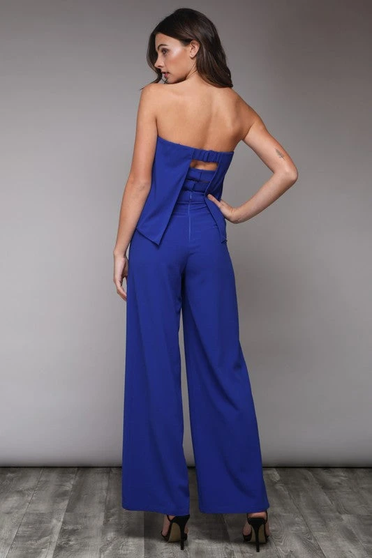 Cobalt Blue Strapless Jumpsuit With Three Band Back