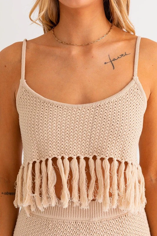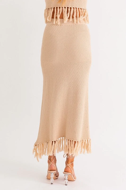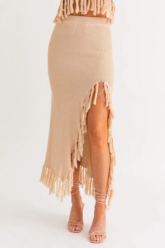 Crochet Knit Midi Fringe Skirt & Fringe Crop Top