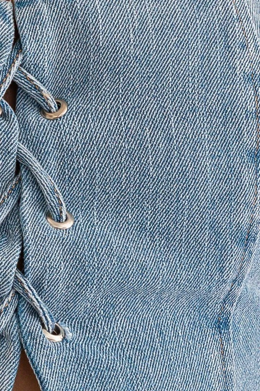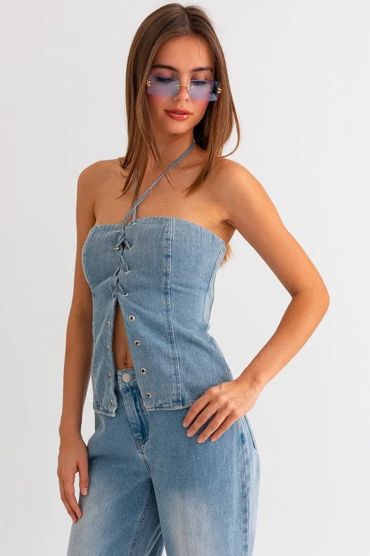 Be the first to review “Denim Halter Neck Lace-up Top” Cancel reply
