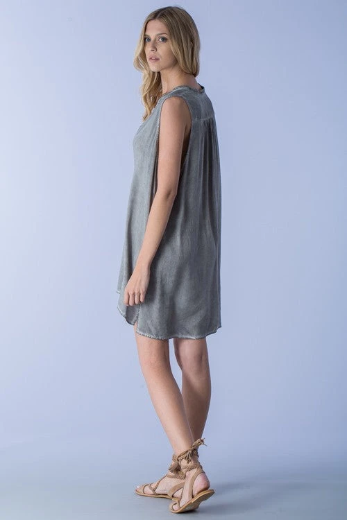 “Sleeveless Oversized, Dress & Shirt”This adorable distressed low neck tunic is soft and airy. Wear it with leggings or as a dress. It’s comfortable and a great addition to any closet. Available in Rose and Grey