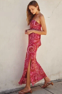 Strapless Chiffon PaisleyMidi Dress