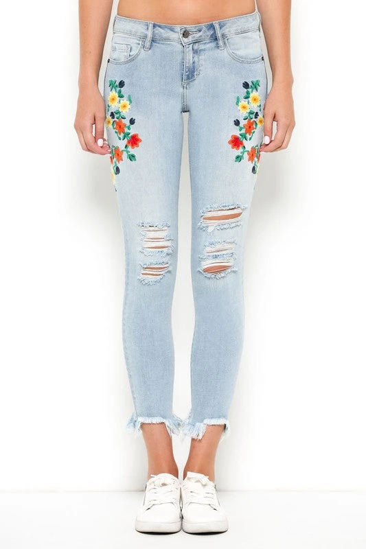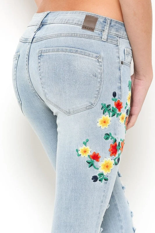 “Embroidered Distressed Skinny”92%cotton/spandex