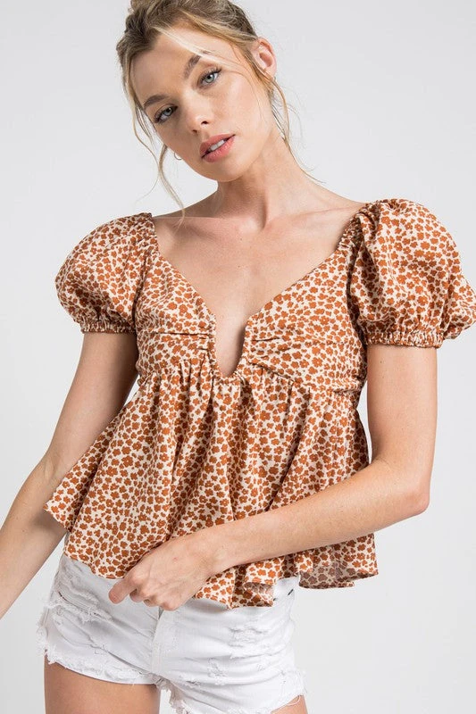 Cinched at the sleeves, cinched band in the back, pleated in front. Horseshoe design in front , flowy. poly