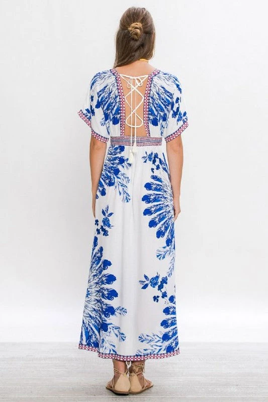 “Floral Maxi Dress” lace up Back!! Soft and very comfortable.