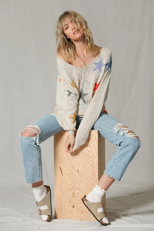 Hippie Vibe Tribe an On-Line Bohemian Store, Amazing Prices. Fabulous fashion faithful this Knit Multi Color Star Pullover spring/summer style for anywhere you go!!!