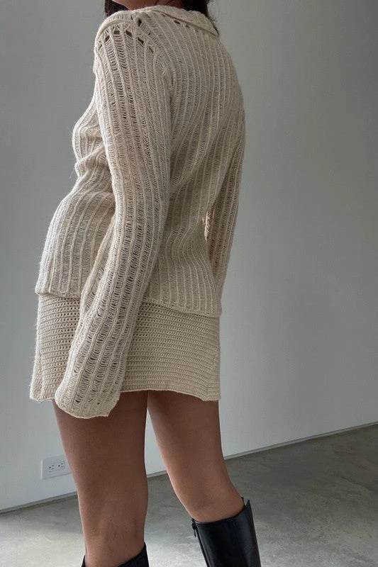 Knitted distressed summary down top and skirt set. acrylic/cotton