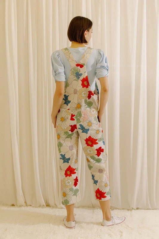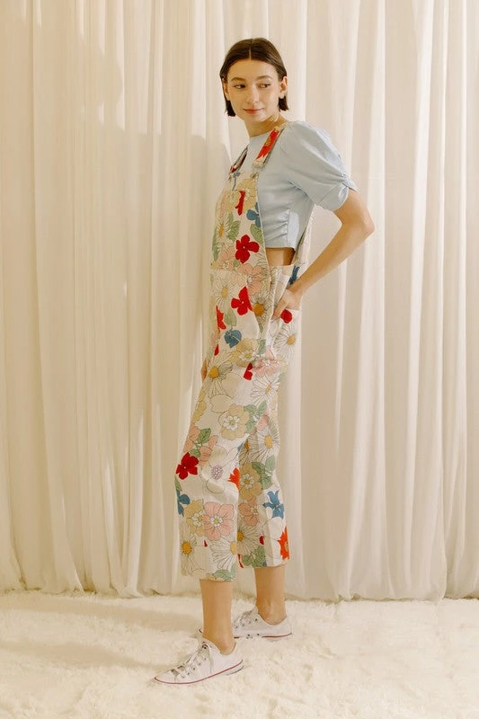 Adjustable straps, side pockets. Ankle straight legged. /cotton