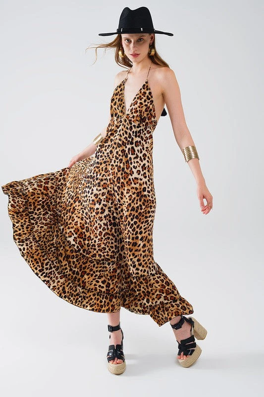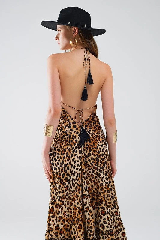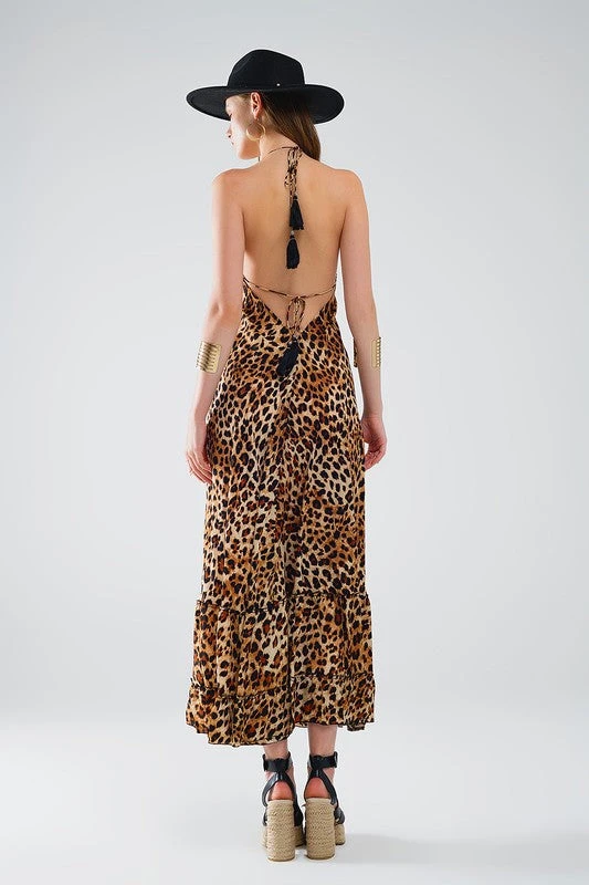 Leopard Boho Satin Open Back Maxi