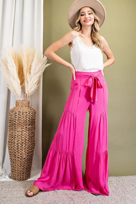 Wide leg pant with its tiered design with a smocked with a smocked waist and tie. (black available)rayon