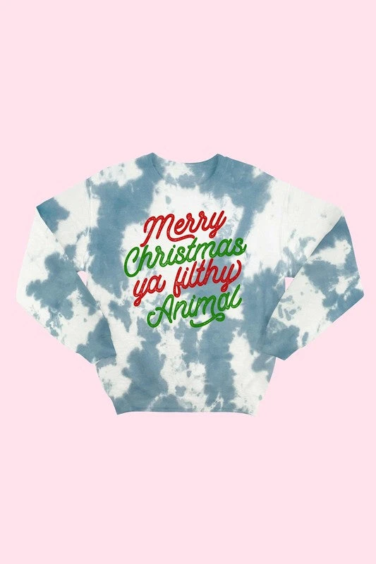 “Merry Christmas You Filthy Animal” Tie-Dye Sweatshirt