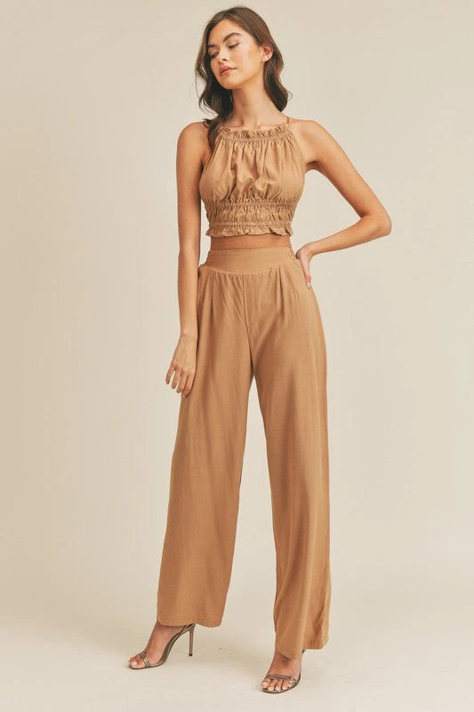 Mocha Halter Neck Top With Matching Pants