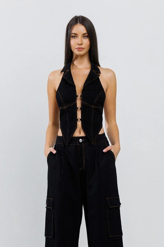 SKU: AGLWC 7731838484641 Categories: Tops, Tops and Blouses Tags: Black, Boho Collection, Halter, Vest