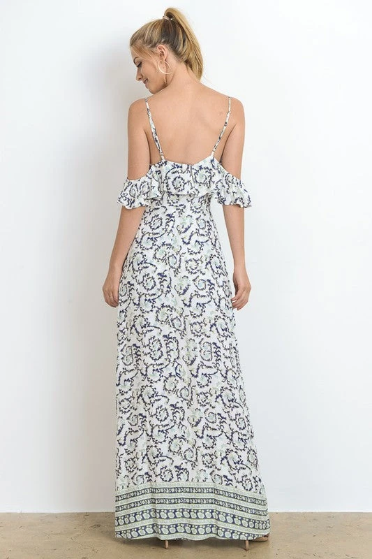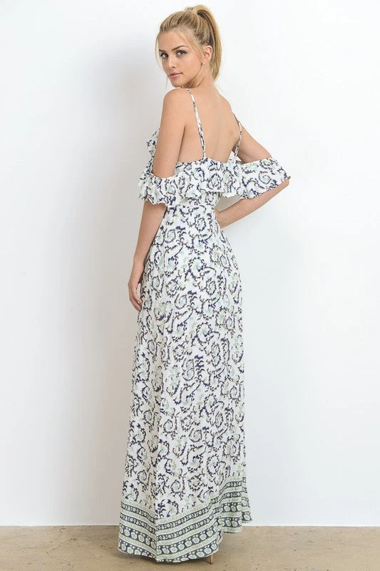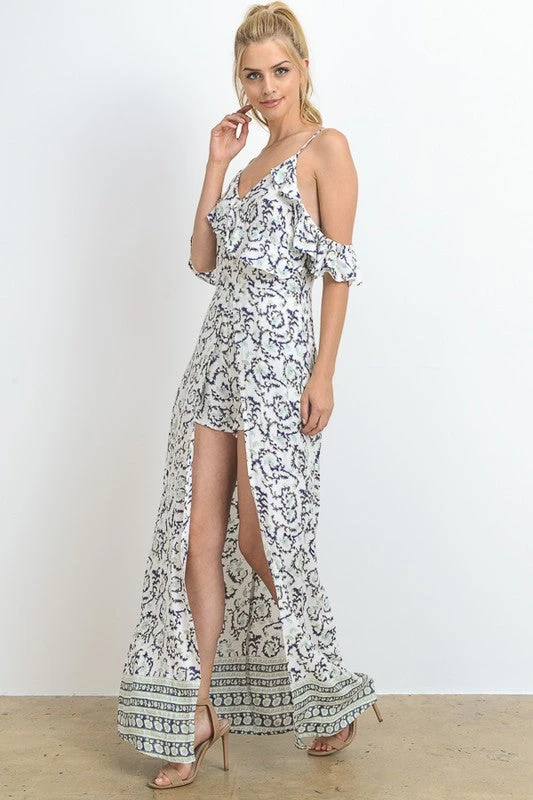 Off Shoulder Ruffle Maxi/Romper