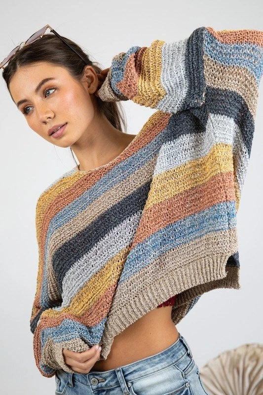 “Ready for Fall” Oversized Fall Sweater with its burgundy strip is perfect for that fall day. This sweater is a soft feel and hangs great. Free Gift always with purchase. rayon/poly/sheer