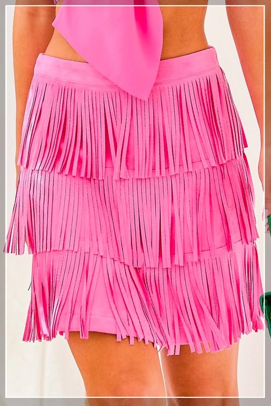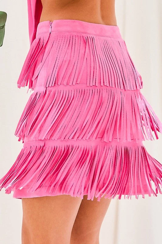 Pink tiered faux suede mini-skirt,zipper. (top sold separately) spandex/poly …TOP available