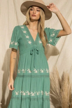 TEAL FLORAL BOHO-CHICEmbroidered Maxi Dress