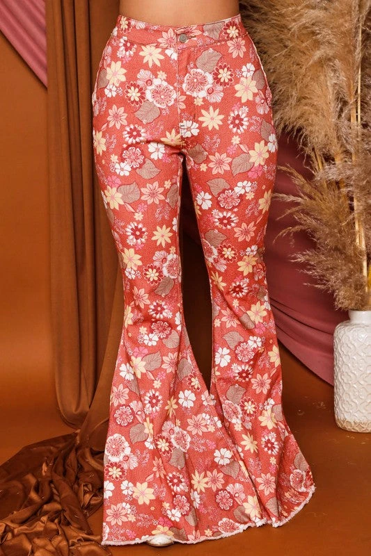 High Waist Floral Bell bottoms, zipper and summary. cotton/spandex