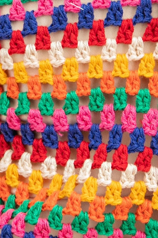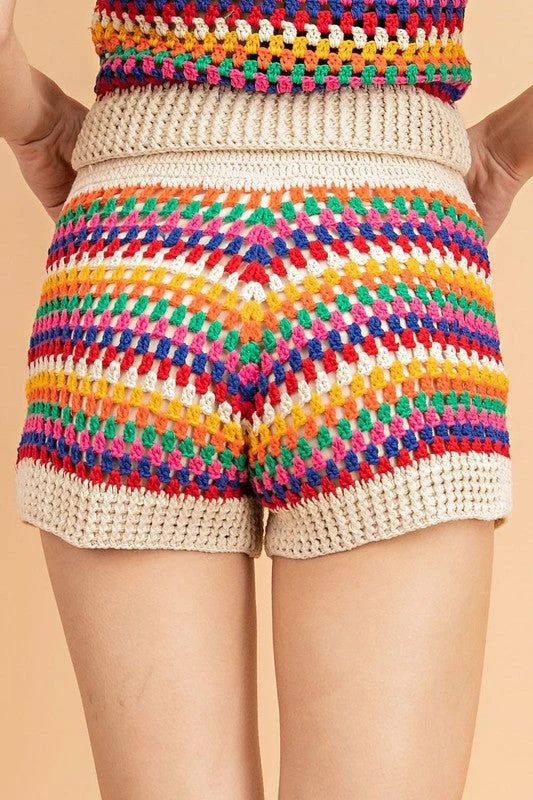 Striped Crochet Shorts and Top is awesome for that summertime party. Model wearing a small, bust 33″, waist 24″, hips 34″.