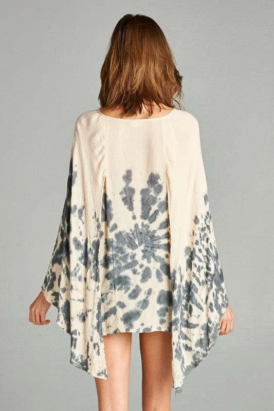 Acid Wash Open Sleeve Top, with a beautiful tie-dye design. rayon/poly