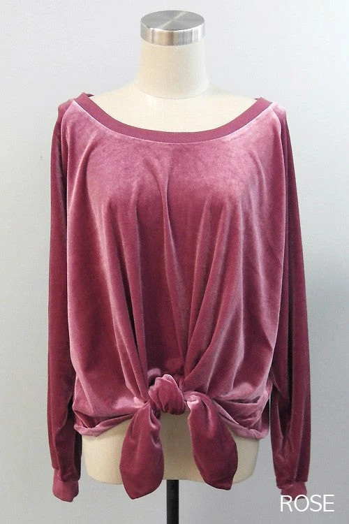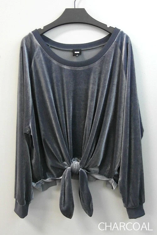 This Velvet Front Tie Pull over in rose, blue and charcoal, Velvet!!